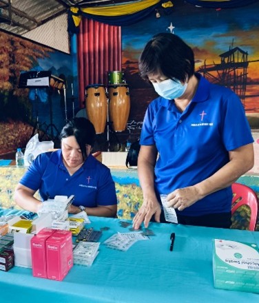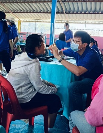 祝福一、医疗服务:山区偏僻,村民不便就医,因此他们很欢迎我们到来。第一晚我们熬夜分装药品至凌晨1点多。接下来几天,150位来自泰文小学的孩童、信望爱戒毒所的戒毒者、湄梦河布道所与基督新村的村民接受了免费体检(包括测体温,量身高、体重、血压),医生看诊和领取药品的服务。我们也有机会为他们一一祷告。